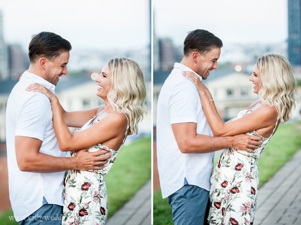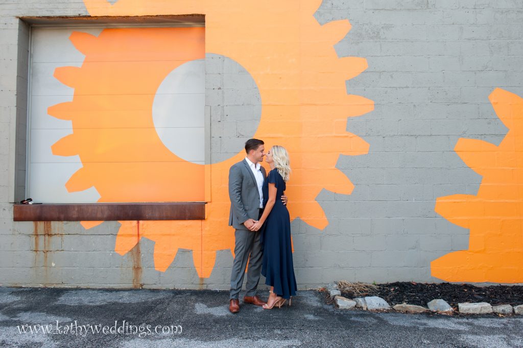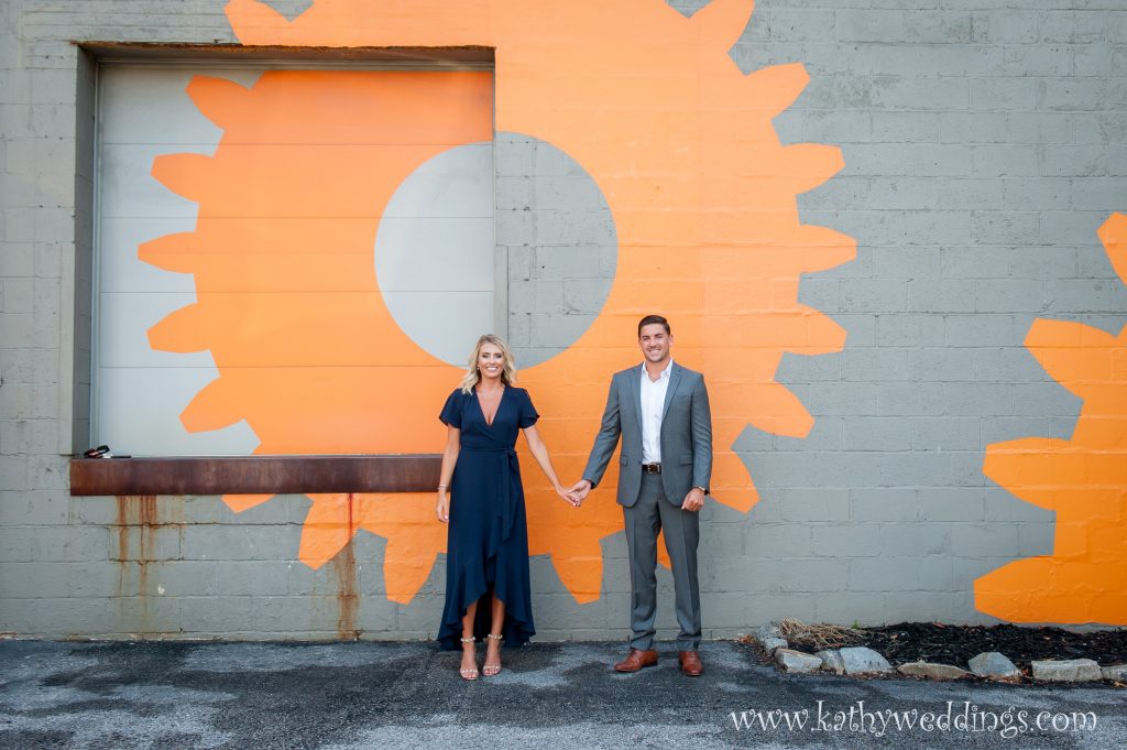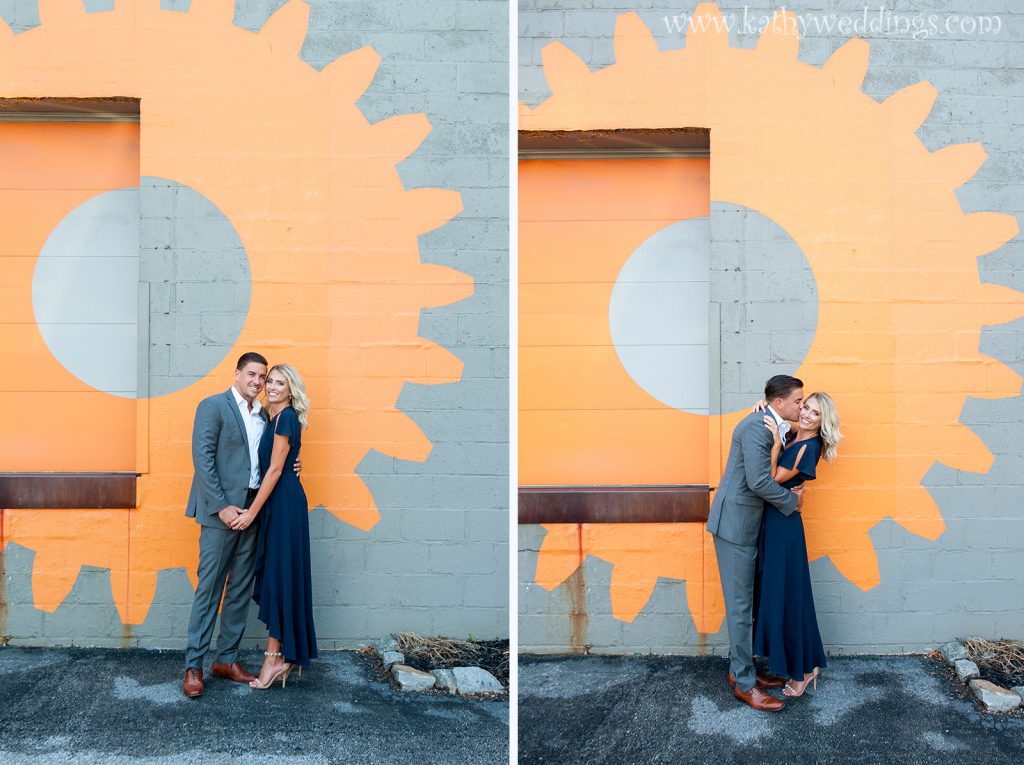 Madeline + Steve decided they wanted to have their engagement session at The Inner harbor in Baltimore over the summer and what an amazing day it turned out to be! I love using popular spots for pics in cities but then finding just a few areas on the fly that make it unique, so that you get the city views but also find something that is a bit different. On my way off of 95 I saw an architect’s office that had painted bright gears on their building so of course I had to drag them there… And while driving by the AVAM I noticed there were NO cars parked in front – which NEVER happens – so we had to do the Love sign too. These two are getting married next year at The Oaks and I can’t wait to document their day. I love how they interacted with each other and had big smiles on their faces the whole time – even though it was pretty hot! Congrats you guys!
